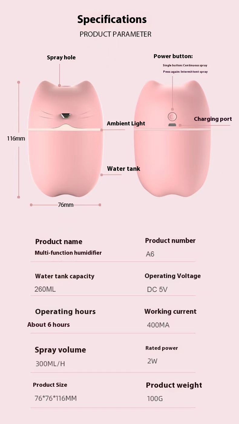 Cute Pet Cat Humidifier Household Car Desktop Air Atomization Mini Spray Aromatherapy Mute Hydrating